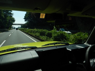 で、こちらもJB64を試乗させてもらっていたのです。ディーラーの女性スタッフは後席、霙が助手席です。こうしてみるとボンネットラインが高いこともあり、意外と視野が狭いのです。