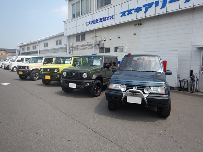 日曜日、きっと混雑していて待ちが入るのは覚悟だなと、オンラインの試乗予約もしないでのこのことスズキ自販茨城へ出かけて行けば、やっぱり新型ジムニー祭り状態です。しかも県内で3台しか配車できなかったというシエラの1台が置いてあるわけですから、興味を持ったお客さんは後を絶たないのでした。