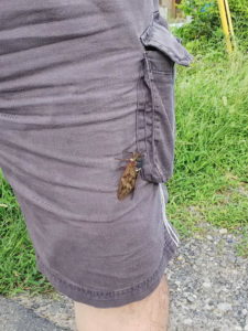 休み中実家へお墓参りしに出かけたら、新月サンにとまる蝉。