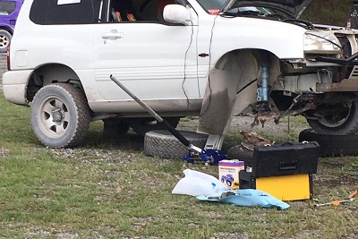 という診断から応急処置が続き、走り出せる段階になったのが本線出走5分前。ぶっつけ本番で臨まねばならなくなりましたが、走れないよりはずっとマシと、川添選手はエスクードに乗り込みます。