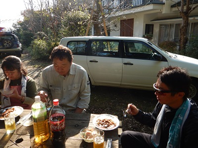 焼肉は出せませんでしたが妻がハッシュドビーフを作ってくれて、いつものテーブルで昼食と道具談義。無風で日差しもあり暖かい日和にも恵まれた日曜日でした。支援部隊の皆さん、ありがとうございました。