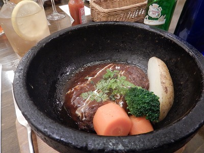石焼き風のハンバーグは、肉よりも付け合わせ野菜の方にもうちょい熱を通してほしいのが正直なところです。ついでながらこれをナイフとフォークで食うのには器をどうにかしてもらいたい(笑)