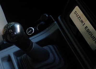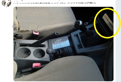 見知らぬ人のツイッターで見かけた、「代車で乗ったMT車」というスチルの右端に、エスクード誕生20周年のときにkawaさんが夜なべして切り出してくれた記念プレートが。