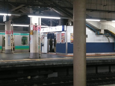 天蕎麦に七味とか言ってたのに、つい「冷たいの」などと言ってしまって出てきたせいろが「これは十割のつもりか?」というごわごわで、まちがいなく茹で足りない。意気消沈してこれを平らげ乗り換えのホームに降りてみれば、隣のホームの階段下の立ち食い蕎麦屋は昔のままではありませんか。