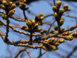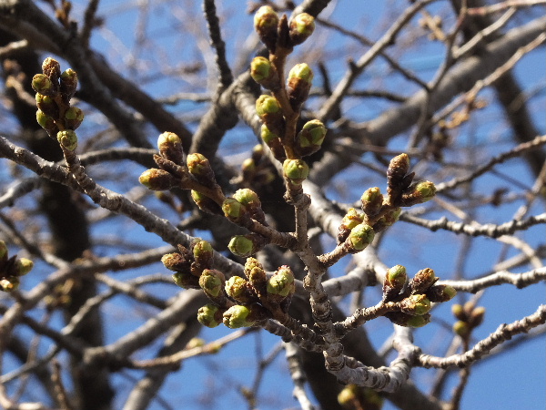 昨日はまだ、丸々とはしてきたけど黄緑色だった蕾が、今日の暖かさで膨らむ膨らむ。