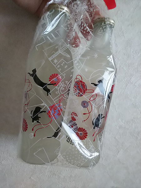 先日、クロさんが下さったお酒。 「あ、猫だー♥」と喜んで眺めていたら、瓶の形に見覚えが。 暫く前に絵柄が可愛くて衝動買いした、京都の酒蔵のお酒でした。