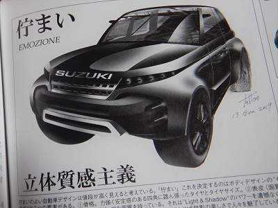 高く評価されるデザインには、まず「佇まい」が必要。線ではなく面の高級感がモノを言う・・・らしいのですが、一理も二理もある話で、直感的に「こりゃかっこいいぜ」と思われる車がそうでしょう。でも、育っているブランドにカンフルを打つのはそう簡単でもないような。「えっ、これ次のエスクード?」(違いますからね)、とこれを見た瞬間、見た人ってどう思うかなあ? という話。たとえば前述のマミポコさんのような人にとって、これは虐待にも見える気がするわけです。