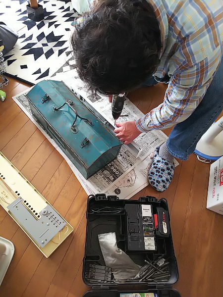 キッチンの流し元灯が壊れてたので、器具買ってきて新月サンに交換してもらいました。