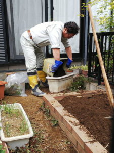 いつもならもう少し早い時期に混ぜ返す庭の畑。