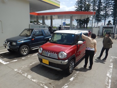 単身赴任が終わって、BLUEらすかるの給油回数が驚くほどに減りまして、そろそろ入れとくかー・・・という呑気さで行きつけのガソリンスタンドに出かけたらこんな風景。