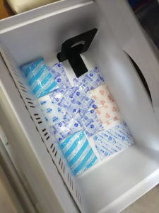 アイスパックを出した時に横の踏台が引っかかって閉まりきらなかったらしく、夕方私が帰宅したら開いてましたです。