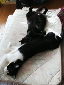 お腹すかせたチビずが、待ちくたびれて寝てました。