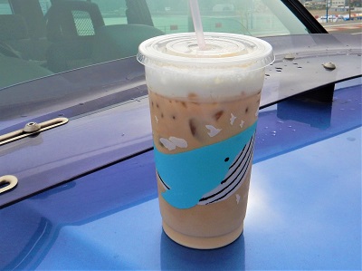 使えねー第二第三ドライバーを放置して、勝浦で自ら補給。メガラテ用カップ、ことしはクジラ柄。シャチは不発でしたがまあ海行きをかもしだすデザインに巡り会えました。