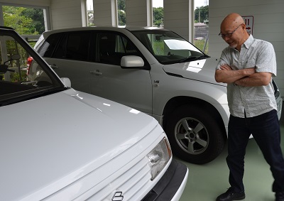 そんな霊的な話はけたぐりをかまして、尾上邸におじゃましたらご夫妻ともジムニー歴史館に出ており、電話をかけたら「すぐそっちに行くよ」