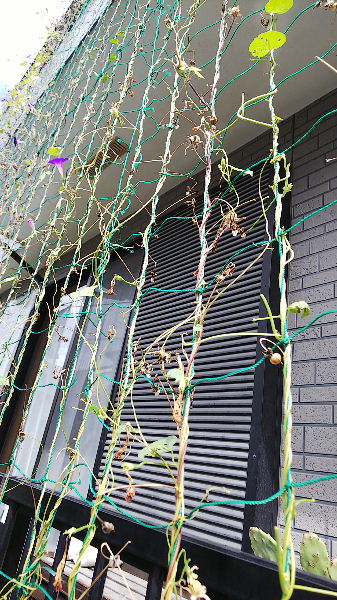 夏の間頑張ってたアサガオのネットが寂しくなってきました。