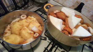 何種類かがパックになっているおでん種と各々好きな具材を追加した結果。