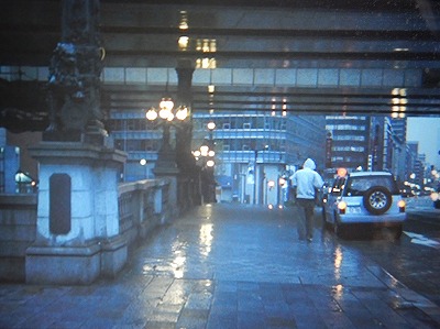 どちらの映画にも出ているノマドは、これまでにも紹介した通り同一個体を映画のテーマに合わせて塗り直したもの。ただ、「花」ではセンターコンソール上部の方位計・温度計といったマルチメーターユニットが外されていました。それは些細なことなので追跡しません。「風花」ではカメラに対して左後方からフレームに入ってくる後ろ姿が最初のシーン。「花」ではロードムービーの出発点となる日本橋での後ろ姿から登場します。