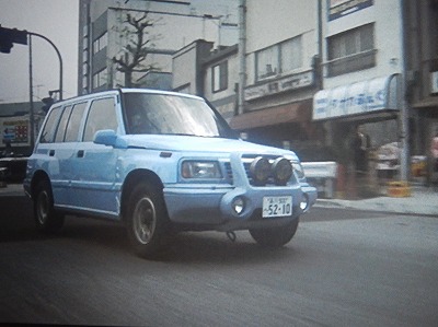 「花」はこのあと「風花」をオマージュするように、ただし左後方から接近してくる姿を撮影しています。これらを撮影しているのは、西谷監督が招集した「相米組」の面々。クランクインは2002年4月7日で、相米氏が急逝されてから7か月後。極めて短期間で企画制作が立ち上がっていますが、短期間だったからこそエスクードの引き続き手配が可能だったのでしょう。この手の小道具、1年以上放置しておいたら維持費問題から高確率で処分されてしまうでしょう。