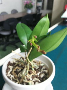 シクラメンに続いて花芽をつけた、胡蝶蘭。