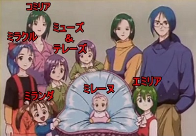 ところが、このマクロスの防空隊に所属していたエースパイロットのマクシミリアン・ジーナスに視点を移すと、彼と彼の妻であるミリア・ファリーナ・ジーナスの家庭はまだ、現代から未来へと橋渡しを続けています。二人の最初の子供であるコミリア・マリア は2011年3月の誕生。この娘を長女として次女ミラクルが2017年誕生、三女ミューズと四女 テレーズの双子は再来年(2022年)、五女 エミリアが2024年、六女ミランダが2026年に生まれてきます。