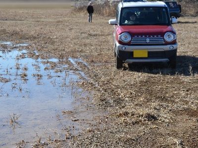 ぬかるみは浅く見えますが、この時点で人間で踝まで沈み込んでいましたから、フレームアウトしている左へどんどん行けば、四駆のハスラーだってスタックする(というか、わざとスタックさせてグリップコントロールを使い、脱出時のトルク制御テストとやり方を教えるつもりだった)こと請け合いでした。