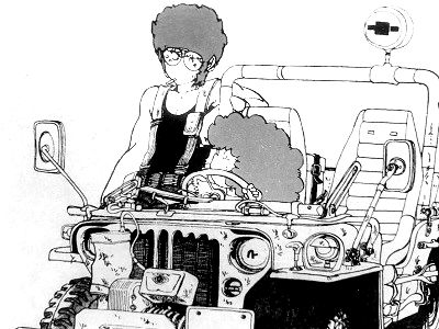 いや、それだけで軽井沢~がRVブームの火付けになったとは言い切れませんよもちろん。たがみさん自身が漫画で扱うガジェットにて、RVにこだわったことはありませんから。しかし、このМB風J3(らしき車体)は、80年代前半の青年漫画の世界ではちょっとしたインパクトを持っていたように思います。