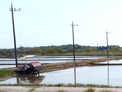 この雨にやられてエンジン・・・というかセルモーターがいかれてしまったわけではないのですが、それも即座に修理できたので、不要不急ではない業務で走っている郊外は田植えの風景です。ところにより昨年の台風被害で農業用水を引いてこられない地域もありますが、今年は「総出で」できないことの方が大変そう。