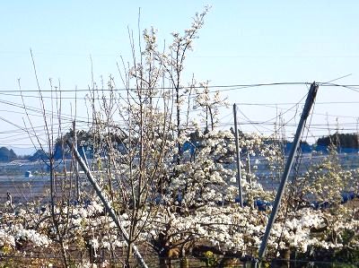 ソメイヨシノの前線が北へ去っていく中、梨の花が毎年のように満開です。