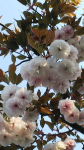 ソメイヨシノが大半散ってしまいまして、近くの八重桜が見頃になりました。