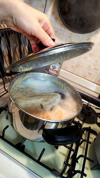 翌日、届いてすぐ茹でましたわ。 晩御飯は炊き込みご飯♪ 四合炊いたらお釜ギリギリ・・・ よかった。五合とがなくて(汗) さて、残った竹の子で煮物でもつくるか。
