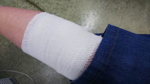 痛いなーと思って見たら、デニムに血が滲んでましたよ。