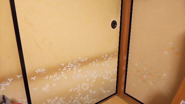 どーしよぉかなぁ・・・同じ襖紙、売ってないぞ多分 (買ったのだいぶ前だし・・・)