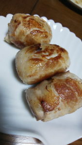 焼おむすびはこの前作ったしなー・・・ 焼き飯も作った事あるし、かと言って 雑炊じゃ暴れるだろうし(笑) んー!豚ロースの薄切りがあるから肉巻きおむすびつくってみよ♪ ・・・というノリで拵えた次第です。