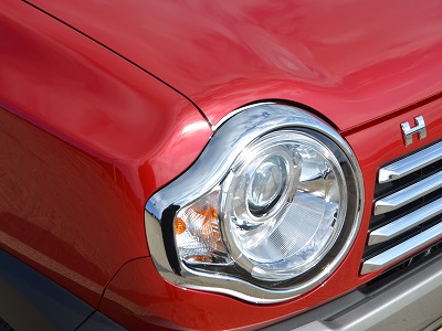 ガン見していて、ヘッドライトの構造が異なっていたことに、ようやく気が付きした。専門的なことはわかっちゃいないんですが、二代目ハスラーのヘッドライトを人間の「眼」にたとえるなら、「黒目」があるのです。車を擬人化して表情を出す際、ヘッドライトを瞳のように描き込む手法はありますが、二代目はそんなささやかなものじゃなくて、白目が少ない真っ黒な巨大な瞳というところでしょうか。