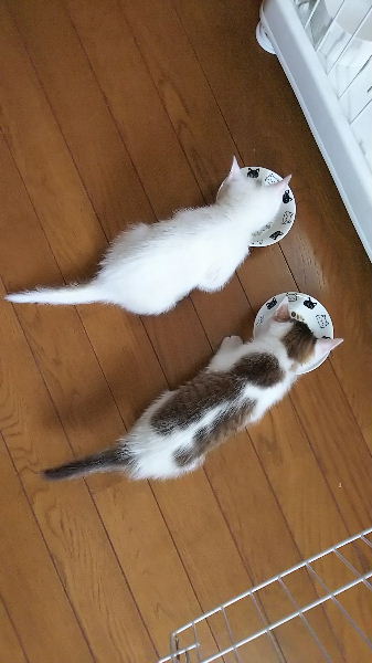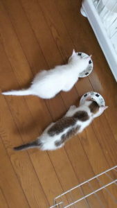 ご飯はさんで20分くらいケージから出したら縦横無尽に走るわ転がるわ。 仔猫ってこんなにせわしい生き物だったっけ・・・ でん・いちはもう二回りくらい大きくなってから来たので 毛玉が絡まりながら転がる様は初めて見たわ。 そして、よく食べるのでよく出します(良い事だ) 元飼い主さんが「砂を変えたらトイレで用を足さなくなっちゃったので」 と、トイレ砂を1袋下さったんですが。 幸いなことにうちにあって誰も使ってなかったシステムトイレでちゃんと ちっちもうんPもします。 たびが使ってたんだけど、その後はちぃがたまーーーに使うくらいで でん・いちは入りさえしなかったという・・・