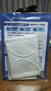噂のマスク、先週の土曜日に届きました。 世間で言われてるほど小さくもないと思うけど? まあ、成人男性が使ったら小さめかなぁ。 なんてったって布は洗ったら縮むしな(笑) しかし。 こんなんに460億円かけるって・・・バカじゃなかろか・・・