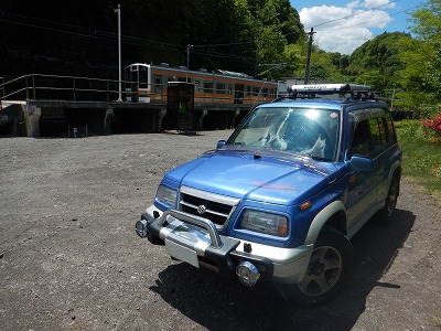 嬬恋村の国道から見下ろせる、吾妻線大前駅に列車が入っていたので、ことさら撮り鉄というわけでもないのに珍しがって立ち寄ったの図。