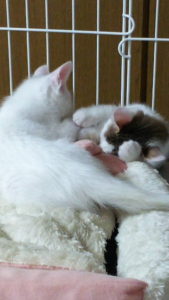 寝る前の事。髪の毛乾かしてたら背後から 〝じゅっ!ちゅぱちゅぱちゅぱちゅぱ〟と音が。 振り返ったら、ゆきがはなのお腹に吸い付いてました。 当のはなは自分の胸元をちゅくちゅく。 ・・・今までもやってたのかしら・・・ 全く気付かなかったけど(汗) まあ、実家のきょうだいはこんな感じですから。 ちょっと哀れ・・・