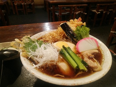 コロナ禍で客足はだいぶ遠のいたようで、それでもまだ頑張れると暖簾を掲げているそうです。閉店時間は一時間ほど前倒しになりましたが、11時に店を開いてから休憩なしで19時まで切り盛りしている(普段は20時)ことには頭が下がります。前日ほどではなかったけれど激暑とやらの日中は冷茶と握り飯だったので、いつもは大天ざるのところを看板献立の五目の蕎麦(の、を入れないと中華になってしまう)。五目どころか十目載ってます。汗だくで食ってまいりました。