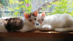 和室の窓で、外眺めてまったり。 ふぅちぃたびもよくココに上ってたわー。 にーちゃんずは履き出し窓の方が回数多いかな。 それにしても大きくなったなー・・・