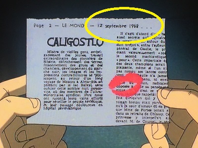 という割にはいきなり峰不二子のキスマーク入り新聞の切り抜き。「カリオストロの城」の有名なシーンで、翌日のクラリスとカリオストロ伯爵の婚礼にバチカンから大司教が来る・・・と書かれているらしいあれです。大事なことは日付。1968年9月12日、つまりあの物語はこのガジェットから時代が判別できます。