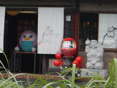 高崎市内のだるまの大門さん、通りかかった瞬間、暖簾の中にいるアマビエだるまが視界に飛び込んできました。良いタイミングで信号待ちで停止状態になれたことが幸いでした。ところで、総天然色仕様のアマビエって、もうこのカラーリングが一般化しちゃったのね? これはもう、最初にこの塗り分けをした人のセンスのたまものでしょうね。さらに大門さんの塗分け方がまた秀逸です。だるまというより、ほんとにアマビエっぽく見える。