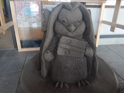東御市には雷電仕様のアマビエが、力士と行事の両方のいで立ちで佇んでいました。こちらは造形の妙です。一応アマビエも妖怪ですからおどろおどろしていそうな印象があるんですけど、なんだろうねこのほのぼのとした表情は。だけど彩色しないところがオリジナルの絵の雰囲気を受け継いでいるかのようです。これを上のアマビエように色付けしたらどこかのキャラクター産業になっちゃいかねない。色の選択によってはゴース星人やガッツ星人にもなりかねない。