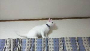 頭上でカチャカチャ音がすると思ったら! ゆきがカーテンレール渡りしてました。 でんいちはやりそうでやらなかったからなー 久しぶりに見たわ。 ちぃが最後に上ったのって何年前なんだろう? 懐かしいなぁ。 そういえば!先週の今日、ちぃの命日だったわ(汗) 毎日がドタバタでしみじみ思いだす暇もない・・・ もう3年過ぎたのねぇ。 キミの後輩にゃんこ新入りはすっげーお転婆だぞー