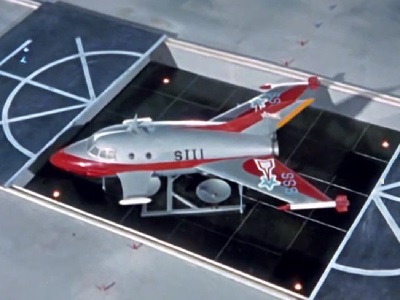 最も有名な装備が多目的航空機のジェットビートル。科特隊と連携する科学センターの岩本博士による設計のV-TОLで、パトロールに始まり物資輸送から怪獣邀撃までこなす優秀な機体です。全長18.5m、 全幅13.8m、 重量25t、 最高速度マッハ2.2の基本性能で、後の地球防衛軍が配備したウルトラホーク3号くらいのサイズ。しかし 乗員6名とホーク1号並みの広いコクピットを有しているほか、ジェットビートルはその戦闘力よりも搬送能力に特筆すべき性能を持っています。