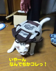 友達にもらった誕生日プレゼントのダヤン。 ミニリュック型のポーチだったので、ゆきに背負わせてみました。 ま、予想はしたけど超嫌がられましたわ(笑) やっぱり猫には無理か。 で、その後でんの背中に乗せたら なんの反応も無い・・・ ちょっとは驚くとか何とかさぁ・・・ まぁ、ゆきは肩紐かけさせたけど でんは乗っけただけだったからね。