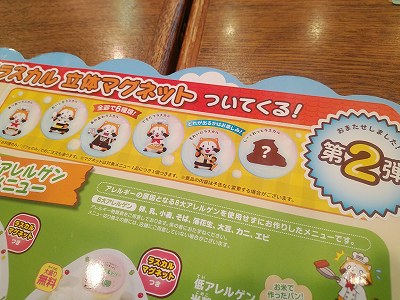 テーブルの端に立てかけてある子供用メニューがどういうわけか裏返しにたたまれていて、その「表」になってしまったページの上端にどえらいものを見てしまったのです。