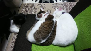 そこよりも、カーペット直の方が温かいけどねぇ。 で、おかーちゃんの座椅子は今日も取られてます。