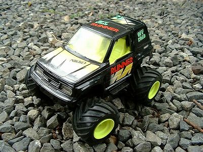 ニッコーが出していた「オフロードランナー」は、他の電動ラジコンがコンバーチブルをベースとしたピックアップトラックタイプであったのに対して、珍しいことに単なるハードトップではなくレジントップのラインを見られる商品でした。壱、弐で紹介したラジコンと異なり、グリルガードは(かっこわるいので撤去してしまっていますが)いわゆる丸パイプを曲げ加工した一般的なものが設計上の基となっています。他の商品はオートエキスポのガードが参考になっていました。