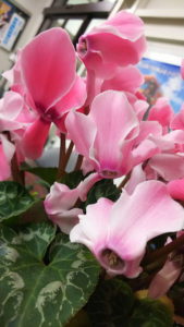 今年いただいたシクラメン。 後から出てきた花の色が段々薄くなってきた・・・ 日に当ててないから? 栄養足りない?? 葉の方も黄ばんできたのが多数・・・(汗)